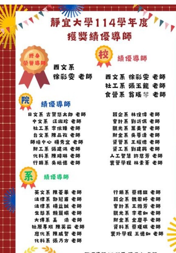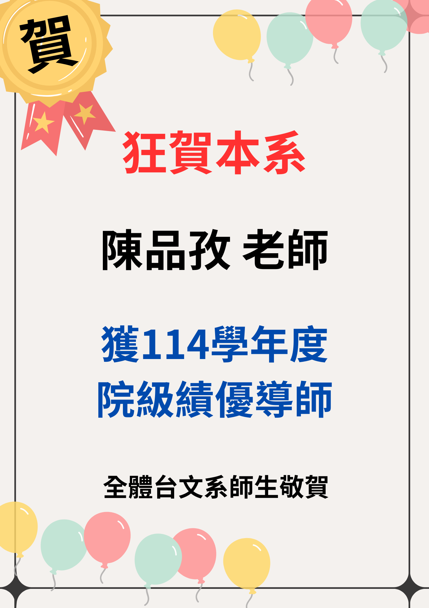 ⭐⭐狂賀!!本系陳品孜老師榮獲114院級績優導師⭐⭐