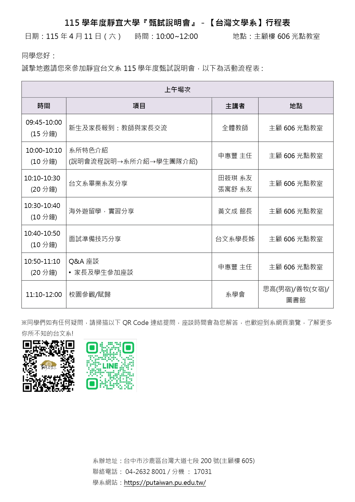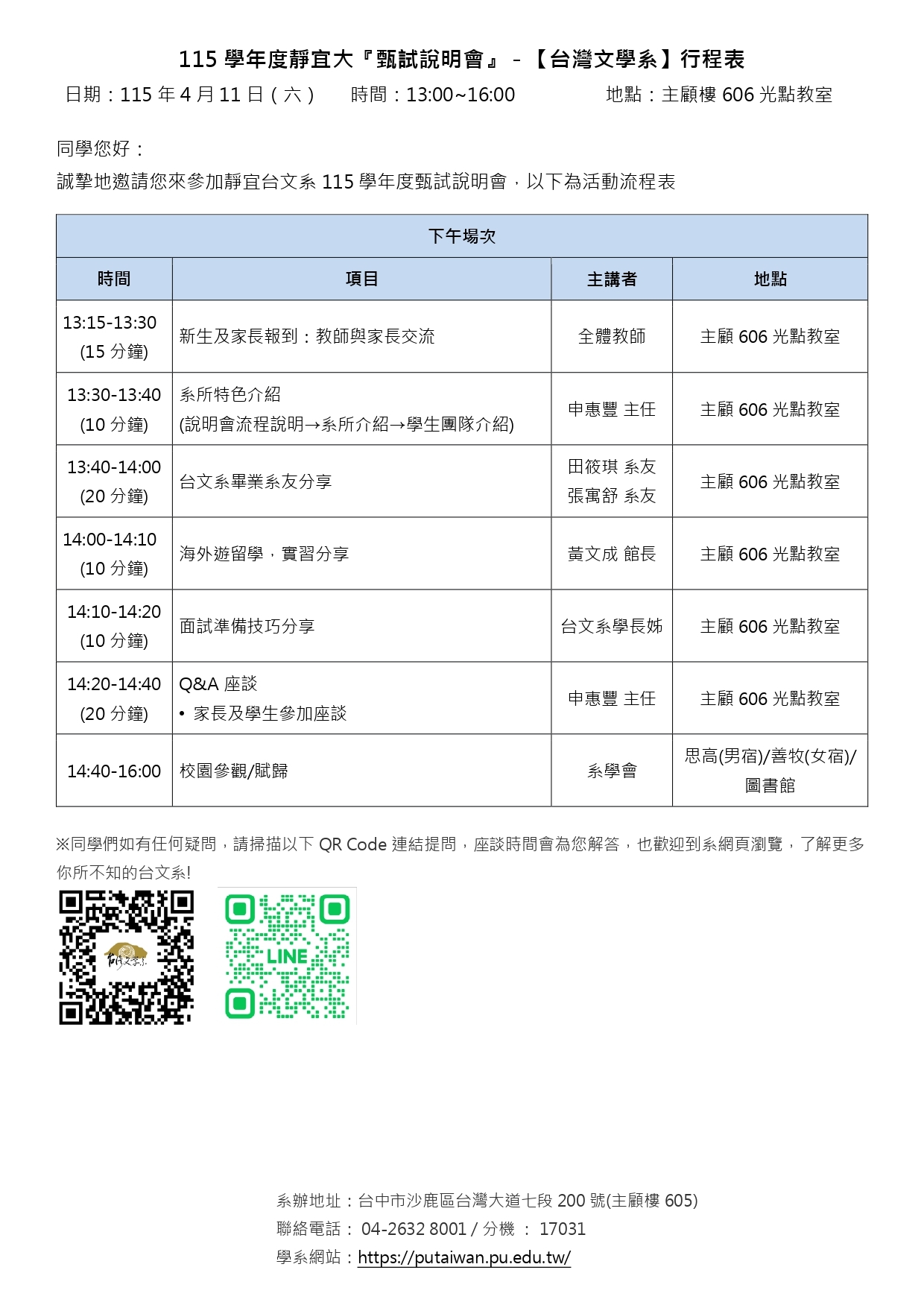 【招生資訊】115靜宜大學台文系申請入學『甄試說明會」